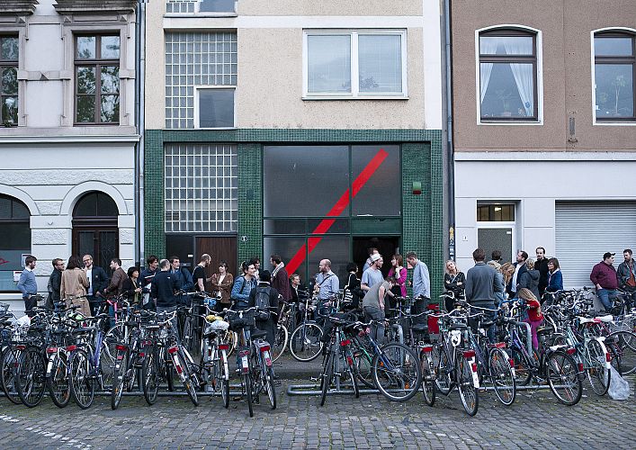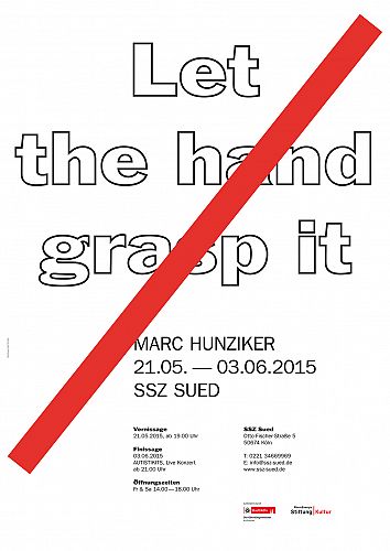 Marc Hunziker verhandelt in Let the hand grasp it öffentlichen, privaten und kulturellen Raum. Durch eine einfach Geste, dem entfernen der Eingangstür, wirft Hunziker die gesetzten Rahmenbedingungen unseres Ausstellungsraumes (kultureller Raum), sowie die des Privatraumes (unser Büro) und die Bedingungen des Öffentlichen Raumes über Bord. Die Tür fungiert als Markierung, Kennzeichnung und nicht zuletzt auch als versicherungstechnisches Merkmal um den Öffentlichen vom Privaten Raum sichtlich zu trennen. Durch das Entfernen erlöscht nicht nur unser Versicherungsschutz, vielmehr rückt der öffentliche Raum über die Türschwelle hinweg, hinein in unseren Ausstellungsraum.